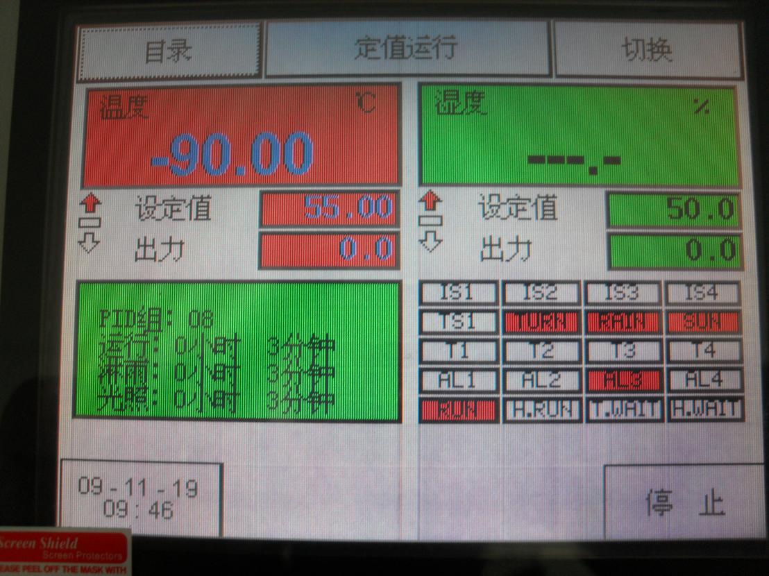 本公司自行研發的智能輻照測量調節系統,包括16位真彩觸摸屏控制顯示界面和北京師大光電生產的輻照測量傳感系統及專用光纖,顯示界面如下: