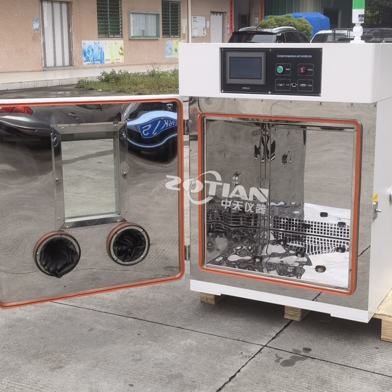 單開門 配觀察窗W250Xh350㎜、照明燈; 操作入口:2個,可以拿起產(chǎn)品進(jìn)行觀察. |