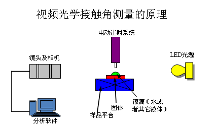 對于理想的平面固體表面,當液滴在表面達平衡后。只有一個符合Young方程的接觸角。但實際固體表面是非理想的,因而會出現(xiàn)滯后現(xiàn)象,致使接觸角的測量往往很難重復。但經(jīng)過精心制備和處理的表面,有可能得到較重復的數(shù)據(jù),特別是高分子的表面。表面的制備和處理的目的是要得到較光滑、干凈的理想表面,但具體的工藝因樣品而異,這里不作更多的介紹。這里主要介紹一些常用的接觸角測定方法,它們都是針對氣—液—固體系的接觸角而設計的。但其中有些方法,只需略加修改,亦適用于液—液—固體系接觸角的測定。測定接觸角有多種方法,可根據(jù)直接測定物理量分為四類:⑴靜滴法(角度測量法)、⑵高度、長度測量法⑶力測法⑷透過測量法。前三種適用于連續(xù)的平滑固體表面,后一種方法可用于粉末固體表面接觸角的測定。