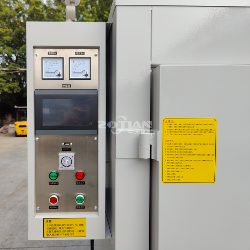 380V,三相四線制,加熱功率 9KW,配控制電箱于烤箱頂部,采用優(yōu)怡觸摸屏控制器,配有 PV 和 SV 數(shù)字顯示窗口。提供 USB 接口:可記錄運(yùn)行中溫度值,可下載各種測(cè)試參數(shù)信息。采用SSR 固態(tài)繼電器控制加熱器,顛覆傳統(tǒng)過(guò)零觸發(fā)時(shí)帶來(lái)的電流瞬間沖擊大、控溫波動(dòng)大等影響,配合性價(jià)比極高的 DC24V 輸出型控制器,可使輸出電壓平穩(wěn)線性變化,控溫效果更穩(wěn)定,性能更穩(wěn)定,使溫度更加精準(zhǔn),溫度由室溫+10℃-400℃可調(diào)。功能有 PID 自整定微積分控制、使溫度更加精準(zhǔn),控溫精度±0.5℃,內(nèi)部溫度均勻性±3℃(空載測(cè)試)。自動(dòng)恒溫、自動(dòng)計(jì)時(shí)(配有高精度數(shù)顯計(jì)時(shí)器可調(diào) 99 小時(shí) 99 分鐘)溫度到后定時(shí)報(bào)警斷加熱、超溫報(bào)警斷加熱、電源缺相相序保護(hù)等功能,及其它正牌電器控。