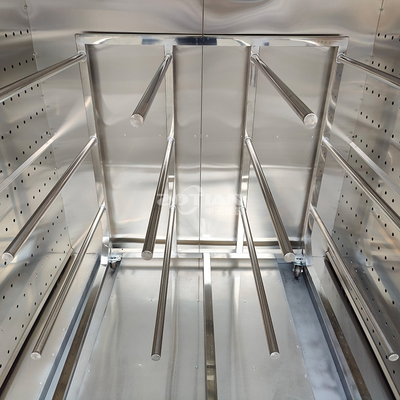 外形采用 1.5mm 厚冷板折彎焊接而成,表面噴電腦白工業(yè)漆(非普通油漆),防生銹,外形尺寸:寬 1600mm,深 830mm,高 1860mm,雙開(kāi)門, 配加強(qiáng)型不銹鋼門鎖,拉手。底部配可移動(dòng)剎車腳輪,方便烤箱移動(dòng)固定。