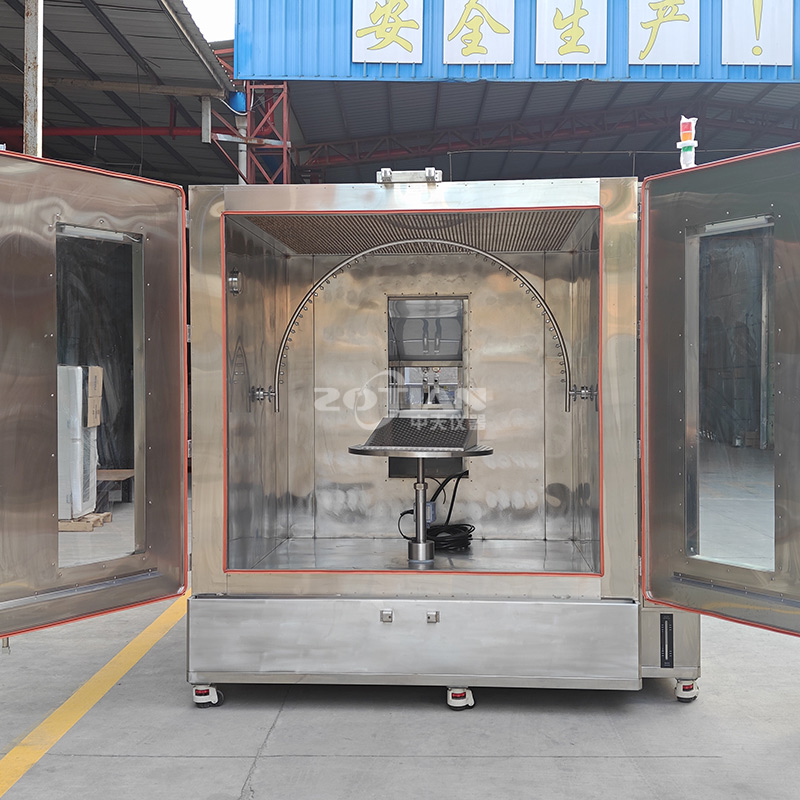 淋雨試驗(yàn)箱是一種人工模擬淋雨的試驗(yàn)箱,眾所周知所有處于大氣壓環(huán)境中的元器件及設(shè)備,無論是工作狀態(tài)還是貯存狀態(tài),都會(huì)不同程度受到各種水(含雜質(zhì))的影響,其中淋雨常見,進(jìn)行淋雨試驗(yàn)是防止這些設(shè)備在經(jīng)過雨水滲透和淋雨時(shí)或之后的工作效能改變程度。